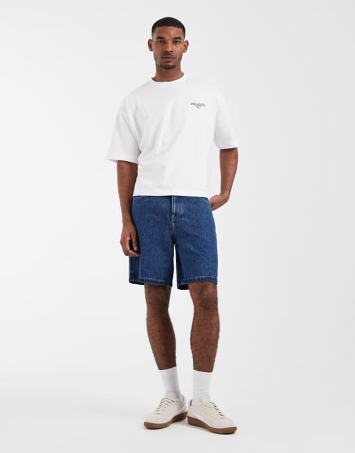 ASOS DESIGN Circular Design Collection denim jorts in mid wash blue