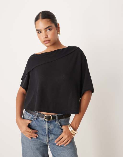 ASOS DESIGN clean cape layer crop top in black