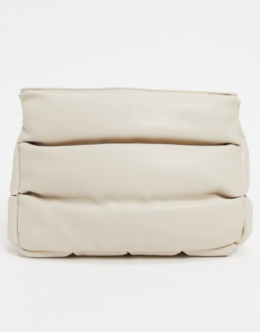ASOS DESIGN clean clutch bag in off white quilted puff