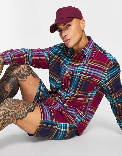 ASOS DESIGN Co-ord 90s oversized check shirt in purple and blue colourblock