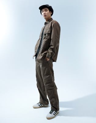 ASOS DESIGN co-ord 90s oversized nylon shirt with utility detail in brown