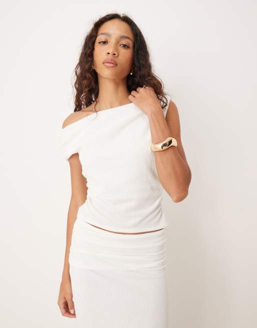 ASOS DESIGN co-ord asymmetric textured rib top in ivory
