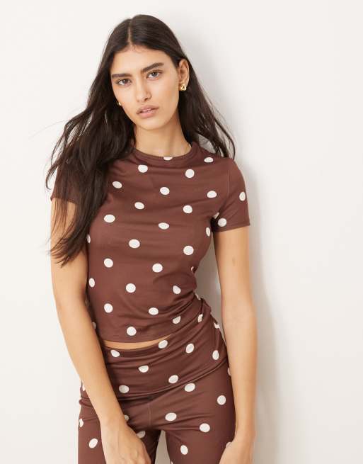 ASOS DESIGN co-ord baby tee in brown polka dot