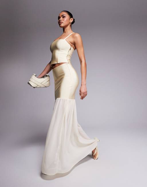 ASOS DESIGN co-ord bandage peplum maxi skirt in buttermilk