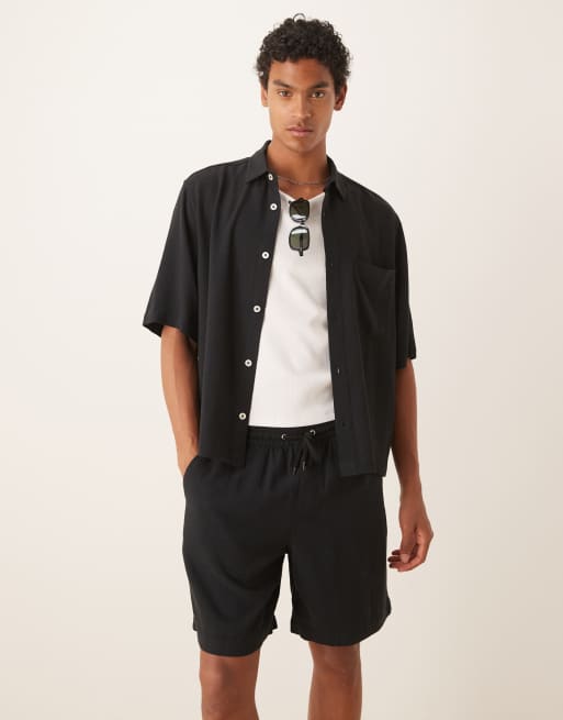 ASOS DESIGN co-ord boxy linen blend shirt with patch pocket in black