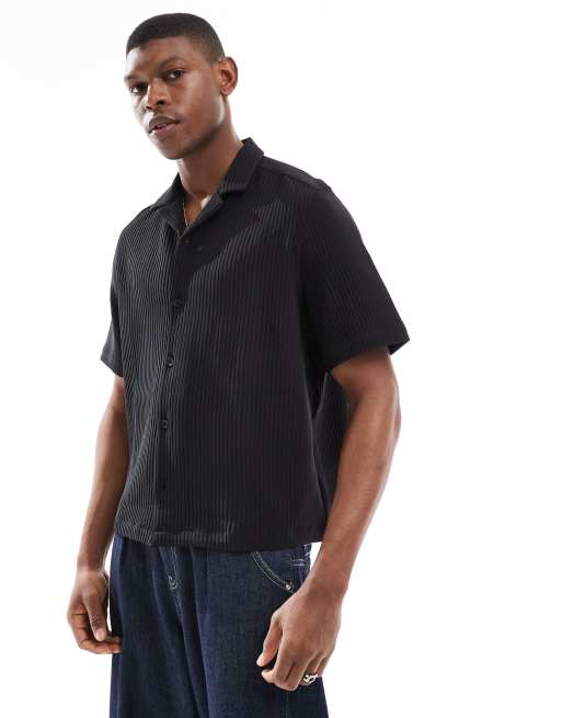 ASOS DESIGN co-ord boxy loose fit revere plisse shirt in black
