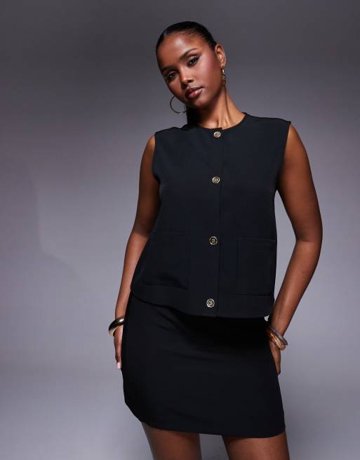 ASOS DESIGN co-ord boxy waistcoat in black with gold buttons