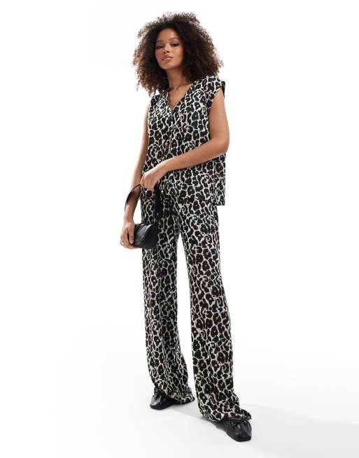 ASOS DESIGN co-ord button down vest and trouser in leopard print - MULTI