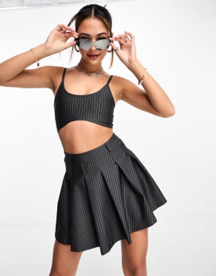 ASOS DESIGN co-ord cami crop top and pleated mini skirt in pinstripe
