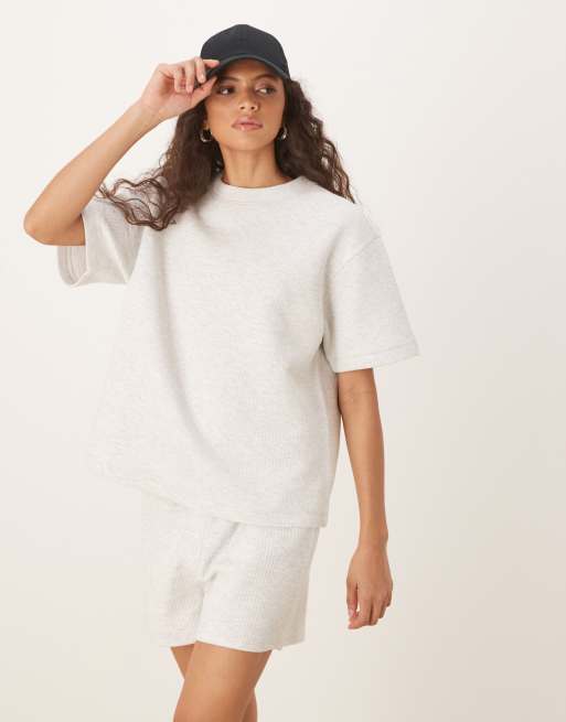 ASOS DESIGN co-ord chunky rib short sleeve t-shirt in grey marl