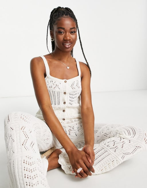 ASOS DESIGN co-ord crochet trousers and top with button placket in cream
