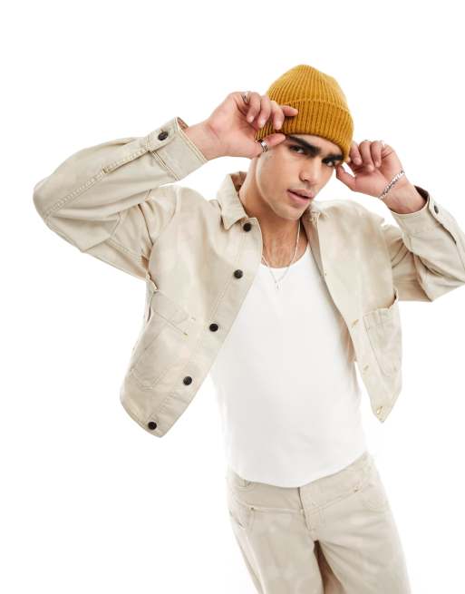 ASOS DESIGN co-ord cropped boxy Harrington jacket in bleached ecru