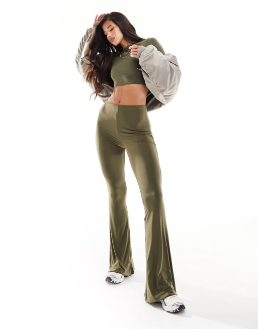 ASOS DESIGN co-ord double layer slinky long sleeve top and flare in green