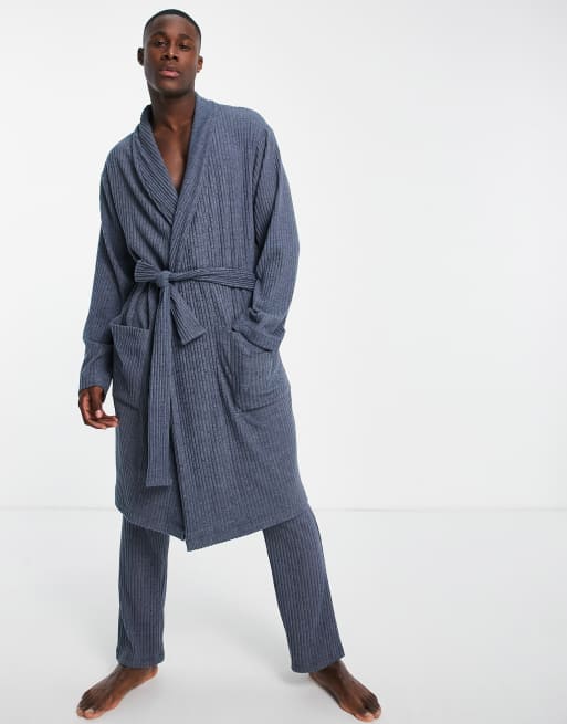 ASOS DESIGN co-ord dressing gown in soft rib in blue