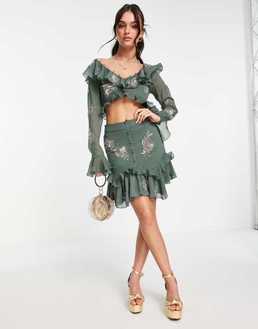 ASOS DESIGN co-ord embellished floral top in fil coupe
