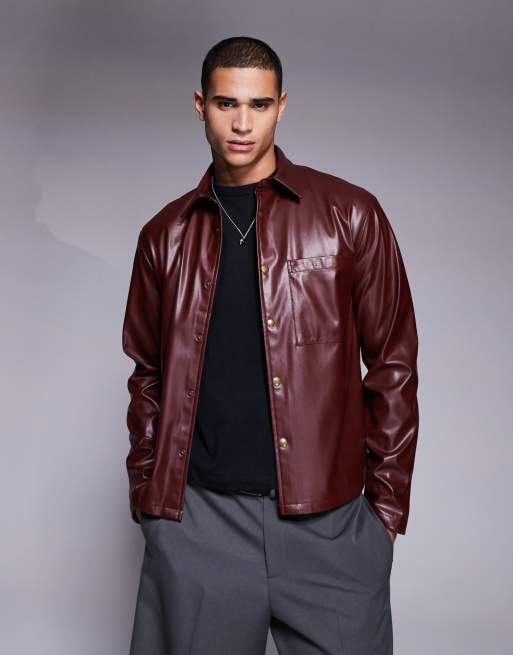 ASOS DESIGN co-ord faux leather oversized boxy shirt in burgundy