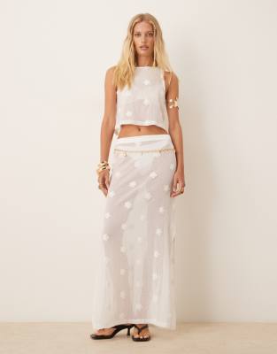 ASOS DESIGN co-ord floral embroidered tie side detail maxi skirt in white