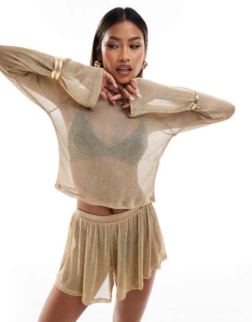 ASOS DESIGN co-ord jersey chainmail long sleeve top in gold