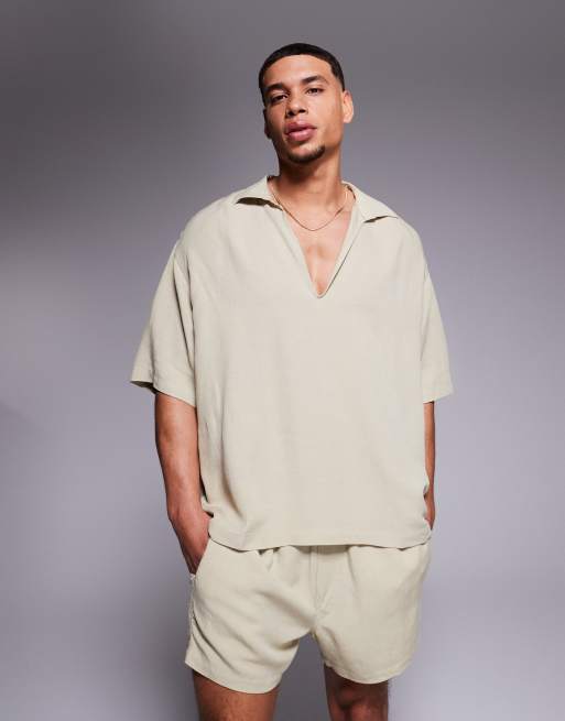 ASOS DESIGN co-ord linen blend oversized shirt in brown
