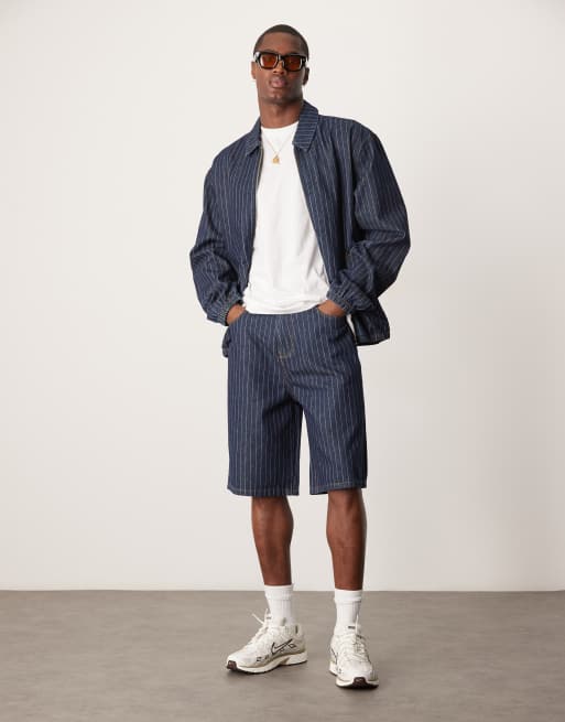 ASOS DESIGN co-ord long length denim jorts with pinstripes in dark wash blue
