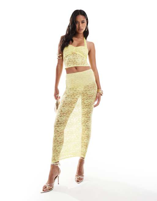 ASOS DESIGN co-ord maxi skirt in yellow lace