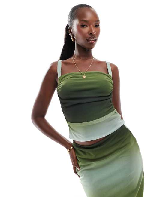 ASOS DESIGN co-ord mesh cowl crop top in green ombre print