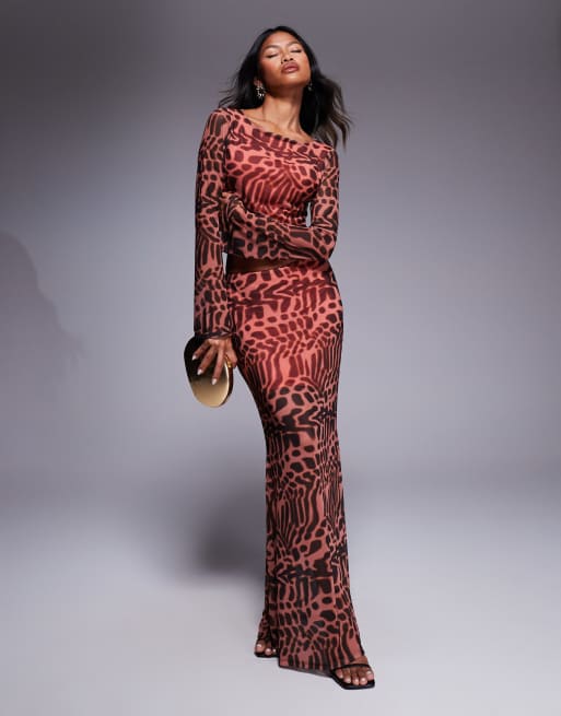 ASOS DESIGN co-ord mesh fishtail midi skirt in animal print