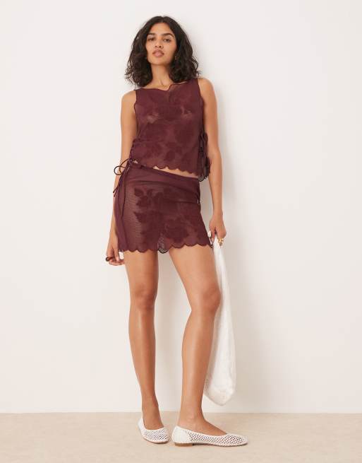 ASOS DESIGN co-ord mesh tie side mini skirt in chocolate
