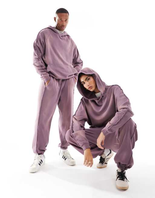 ASOS DESIGN co-ord oversized hoodie in washed purple with seam details