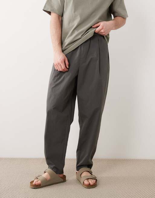 ASOS DESIGN co-ord oversized tapered trousers with pleat in nylon in grey