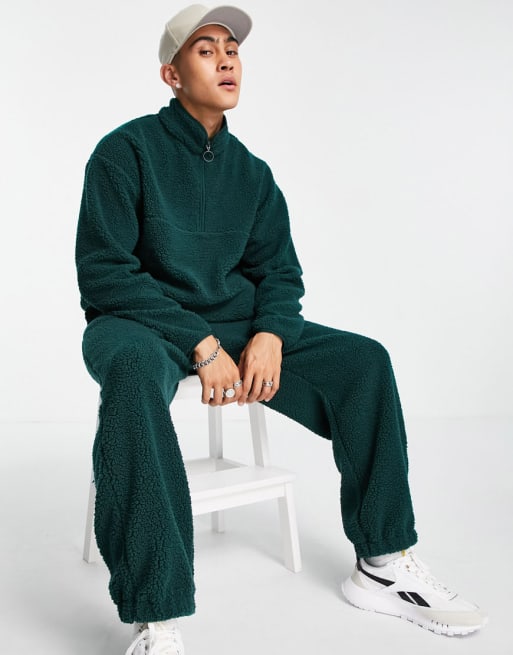 ASOS DESIGN co-ord oversized teddy borg half zip sweatshirt and joggers in dark