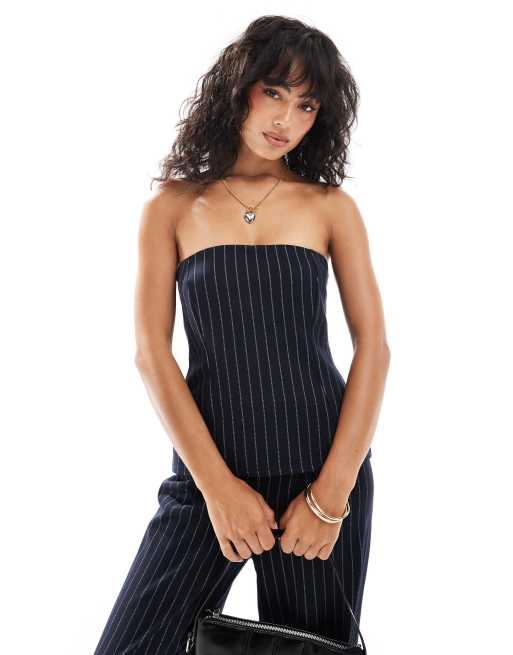 ASOS DESIGN co-ord pinstripe longline jersey bandeau in navy