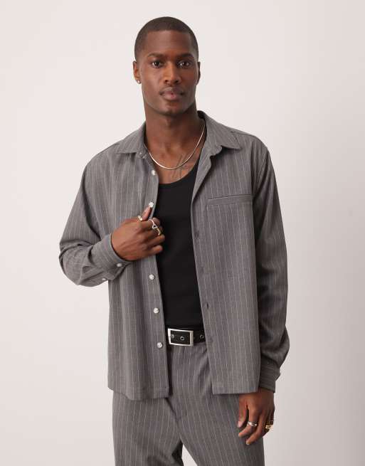 ASOS DESIGN co-ord relaxed boxy shirt in grey pinstripe