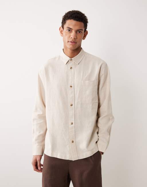 ASOS DESIGN co-ord relaxed linen blend shirt in beige