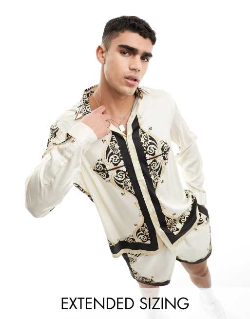 ASOS DESIGN co-ord relaxed satin shirt with baroque border print