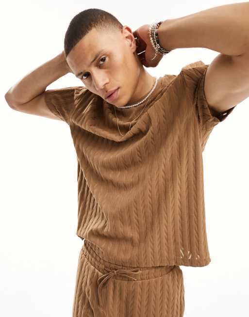 ASOS DESIGN co-ord relaxed t-shirt in brown textured stripe
