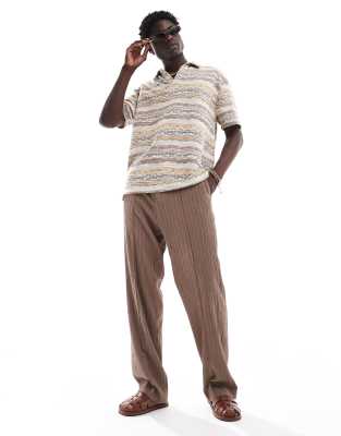 ASOS DESIGN co-ord revere neck polo shirt in multi colour texture