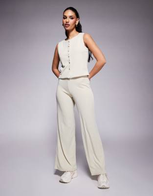 ASOS DESIGN co-ord rib wide leg trouser in stone
