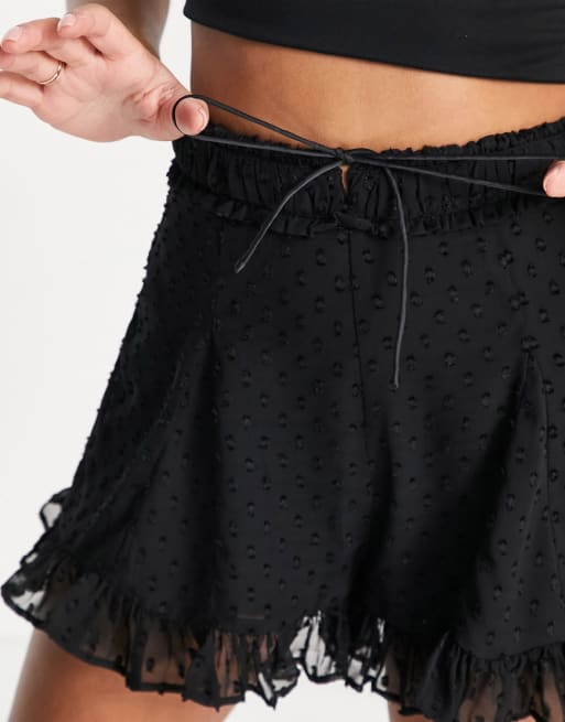 ASOS DESIGN co-ord ruffle halter crop top and ruffle detail shorts with tie deta