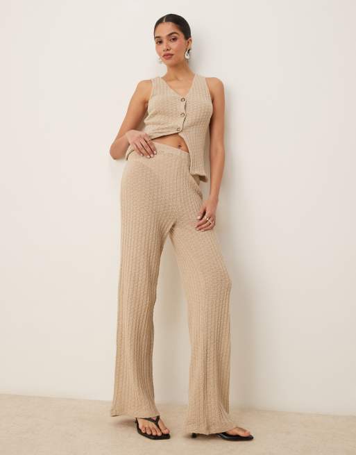 ASOS DESIGN co-ord semi sheer knit wide leg trouser in stone
