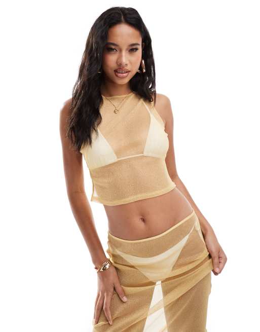 ASOS DESIGN co-ord sheer sparkle tank top in gold