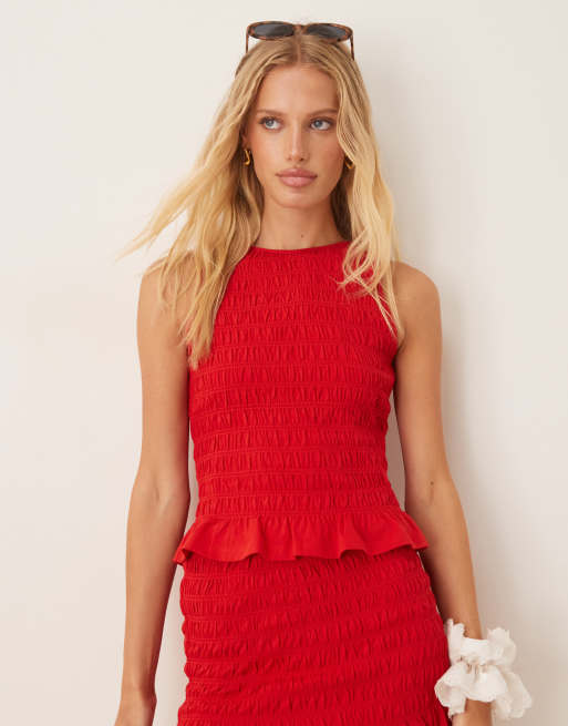 ASOS DESIGN co-ord shirred frill hem top in red