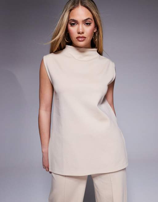 ASOS DESIGN co-ord sleeveless high neck interlock tank in neutral
