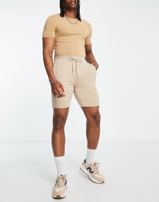 ASOS DESIGN co-ord slim short in beige scuba-style fabric
