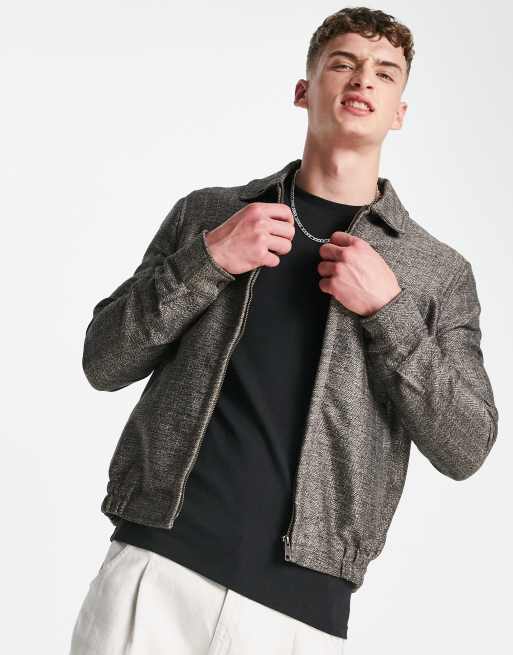 ASOS DESIGN co-ord smart skinny harrington with herringbone in brown