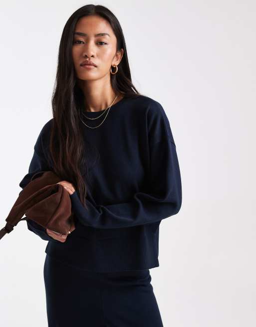 ASOS DESIGN co-ord structured boxy crew neck jumper with side split detail in navy