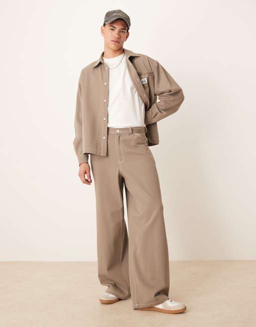 ASOS DESIGN co-ord super baggy twill trousers in khaki