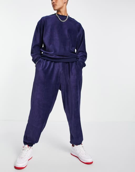 ASOS DESIGN co-ord super oversized joggers in ribbed velour navy