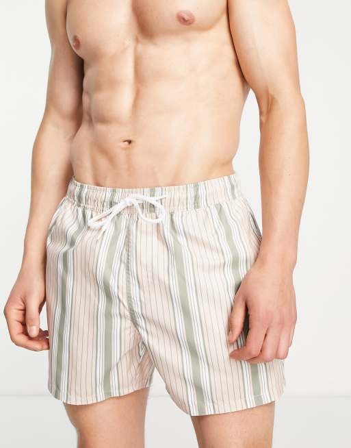 ASOS DESIGN co-ord swim shorts in short length in pink stripe