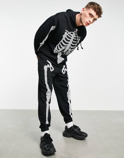 ASOS DESIGN co-ord tapered joggers with Halloween skeleton print in black